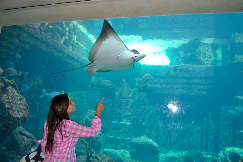 Olhei uma ou duas pessoas descendo e saí para conhecer o resto, no meio do caminho vi muitos lagos com tubarões ou arraias, e alguns aquários por todo Resort, fiquei realmente encantada com todo aquele lugar.